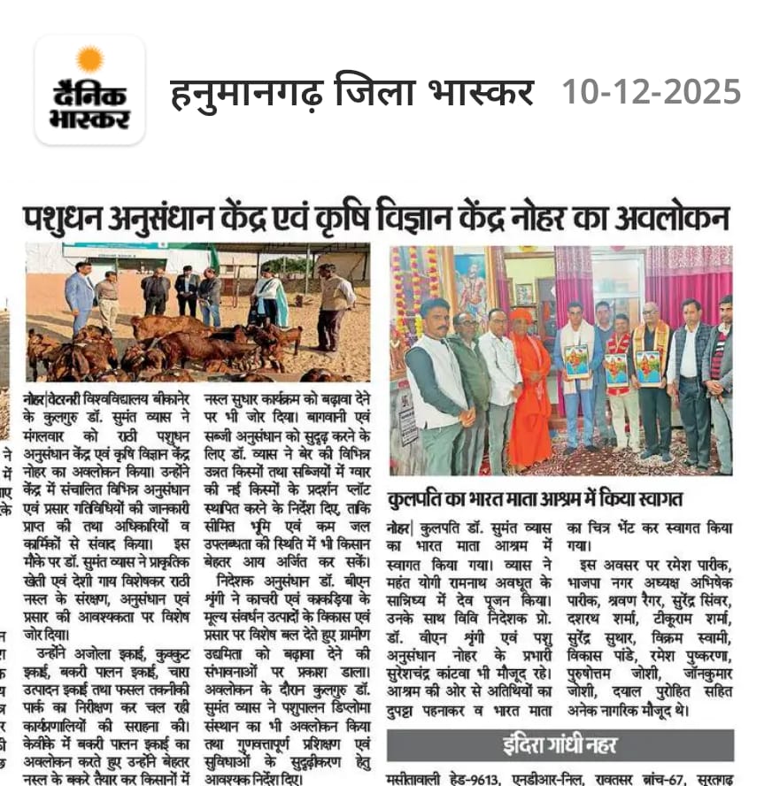 कृषि विज्ञान केन्द्र, नोहर की 12वी वैज्ञानिक तकनीकी सलाहकार समिति बेठक का आयोजन (07 नवम्बर, 2025)