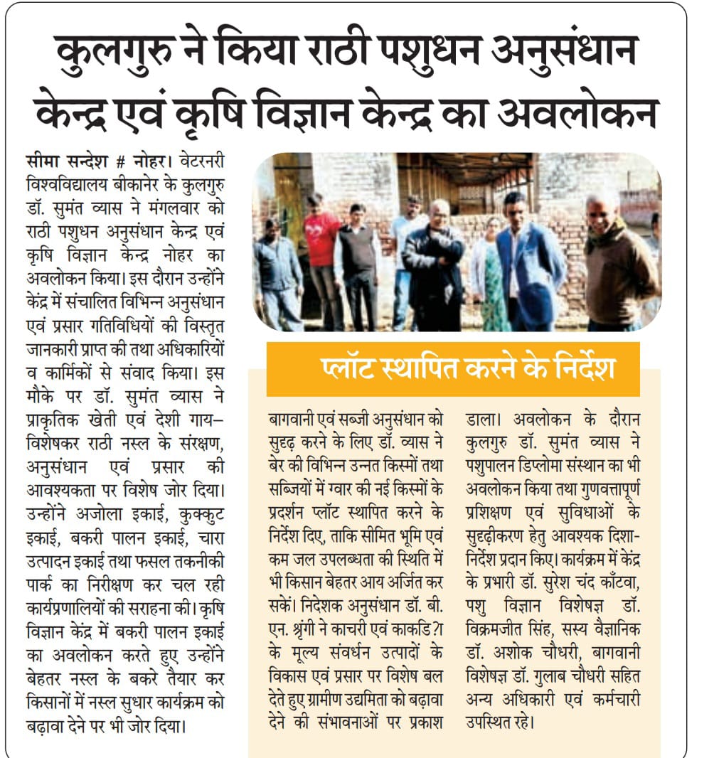 कुलगुरु डॉ. सुमंत व्यास ने कृषि विज्ञान केंद्र का किया अवलोकन (09-12-2025)